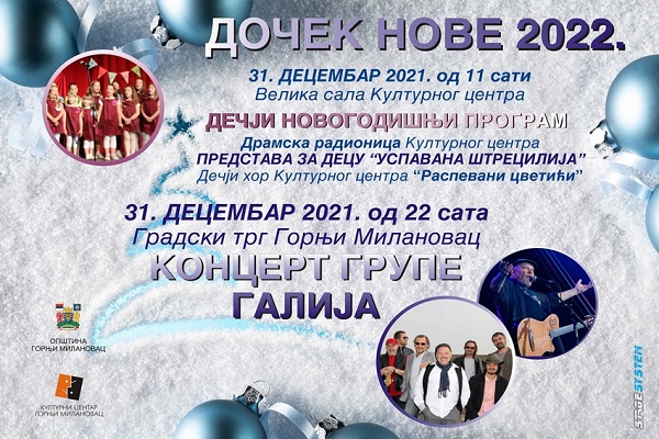 Opština Gornji Milanovac i Kulturni centar Gornji Milanovac organizuju svečani doček Nove godine.