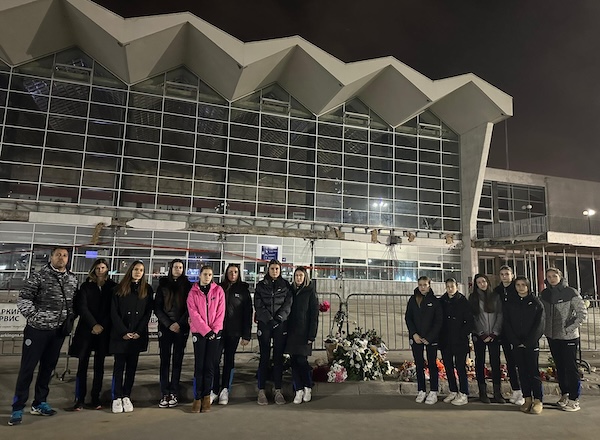 Ipak, gestom našeg tima koji je za svaku pohvalu rezultat je te večeri ostao u senci. Naime, nakon odigrane utakmice odbojakice „Takova“ su posetile mesto stravičnog događaja na železničkoj stanici gde su odale poštu stradalim žrtvama i položile cveće.