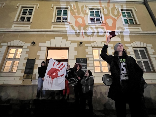 Nakon toga prisutni su, kao i prethodnog puta, otišli ispred zgrade Okružnog načelstva (stari sud) u kojoj se nalaze prostorije redakcije GMpress, gde su 15 minuta pravili buku uz zvuke pištaljki, vuvuzela…