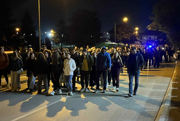 Na Trgu kneza Mihaila u Gornjem Milanovcu sinoć su se građani okupili u znak protesta nakon što su studenti Poljoprivrednog fakulteta u utorak, 14. oktobra, saopštili da je njihova koleginica pretrpela zlostavljanje u policiji.