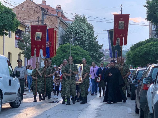 Praznično večernje bogosluženje počelo je u 18.00 sati, a zatim je u 18:45h usleditila litija od hrama Svete Trojice centralnim gradskim ulicama; Crkva Svete Trojice, Takovska, Kursulina, Karađorđeva, Tihomira Matijevića, Sinđelićeva, Vojvode Živojina Mišića i završila se kod Crkve Svete Trojice.