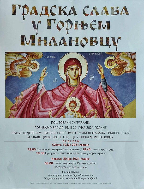 Opština Gornji Milanovac i Crkva Svete Trojice obeležiće gradsku slavu