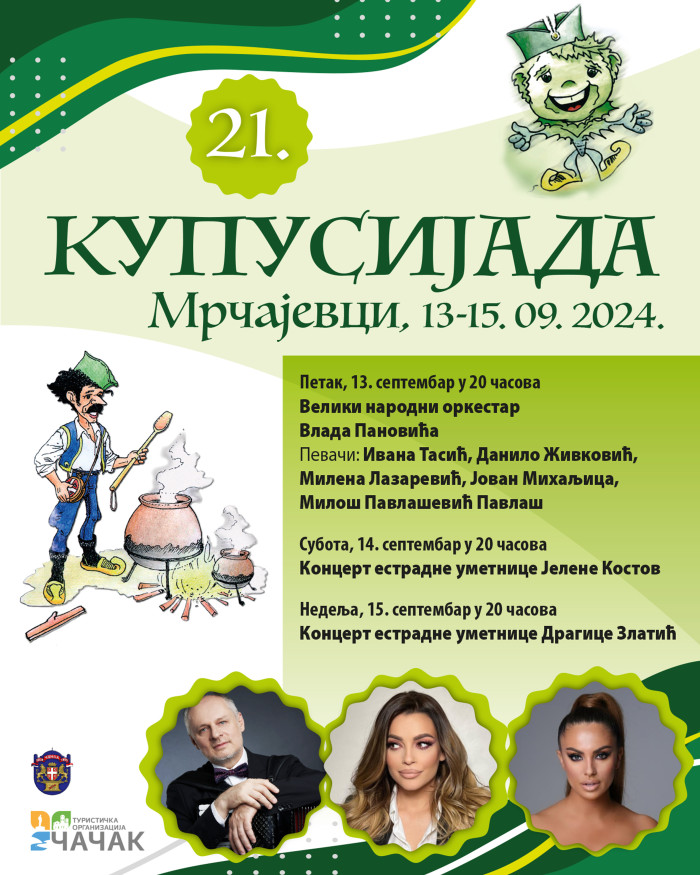 ČAČAK, MRČAJEVCI – Ovog septembra, tradicija, muzika i neodoljivi miris svadbarskog kupusa ispuniće ulice Mrčajevaca na već čuvenoj “Kupusijadi“, 21. po redu. Ovaj jedinstveni gastronomski festival vas poziva da postanete deo događaja koji slavi srpsku kuhinju, narodnu muziku i bogato kulturno nasleđe.