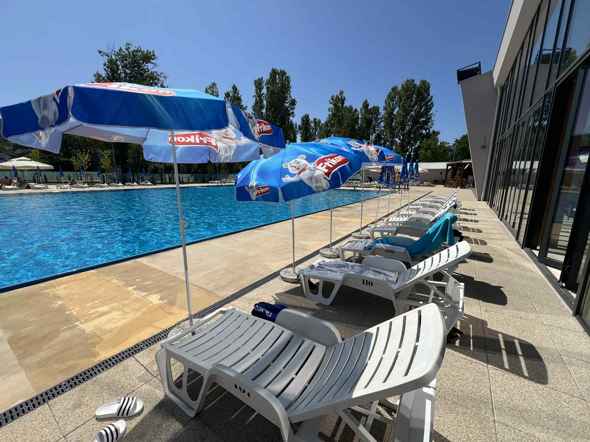 Na raspolaganju je više od 100 ležaljki, a obezbeđen je i dovoljan broj suncobrana, posebno u delu oko malog bazena za decu.