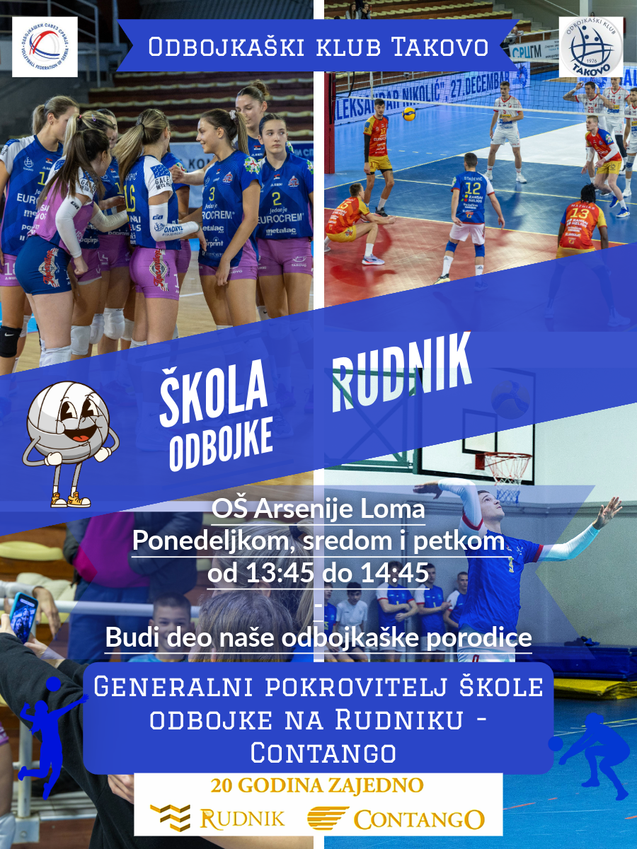 Odbojkaški klub „Takovo“ je sa velikim zadovoljstvom predstavio svoj novi projekat – školu odbojke na Rudniku koja počinje sa radom 01.oktobra 2025. godine u Osnovnoj školi „Arsenije Loma“.