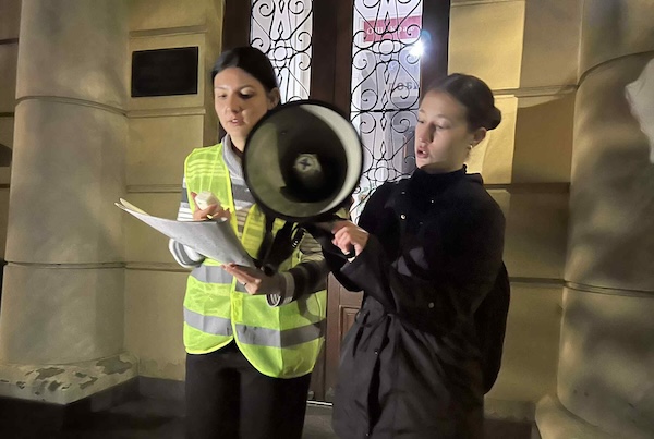 – Večeras smo se okupili ovde da obeležimo jedanaest meseci od pada nadstrešnice u Novom Sadu i odamo počast nastradalima. Pre 11 meseci, 16 nedužnih osoba je izgubilo život. Odnosno, on im je oduzet. Mi se i danas, kao i svakog prvog u mesecu podsećamo i okupljamo ne bi li sećanje na njih i dalje živelo. Ne bi li se ovako nešto nikada ponovilo. Zamoliću vas za 16 minuta tišine – kazala je maturantkinja milanovačke gimnazije.