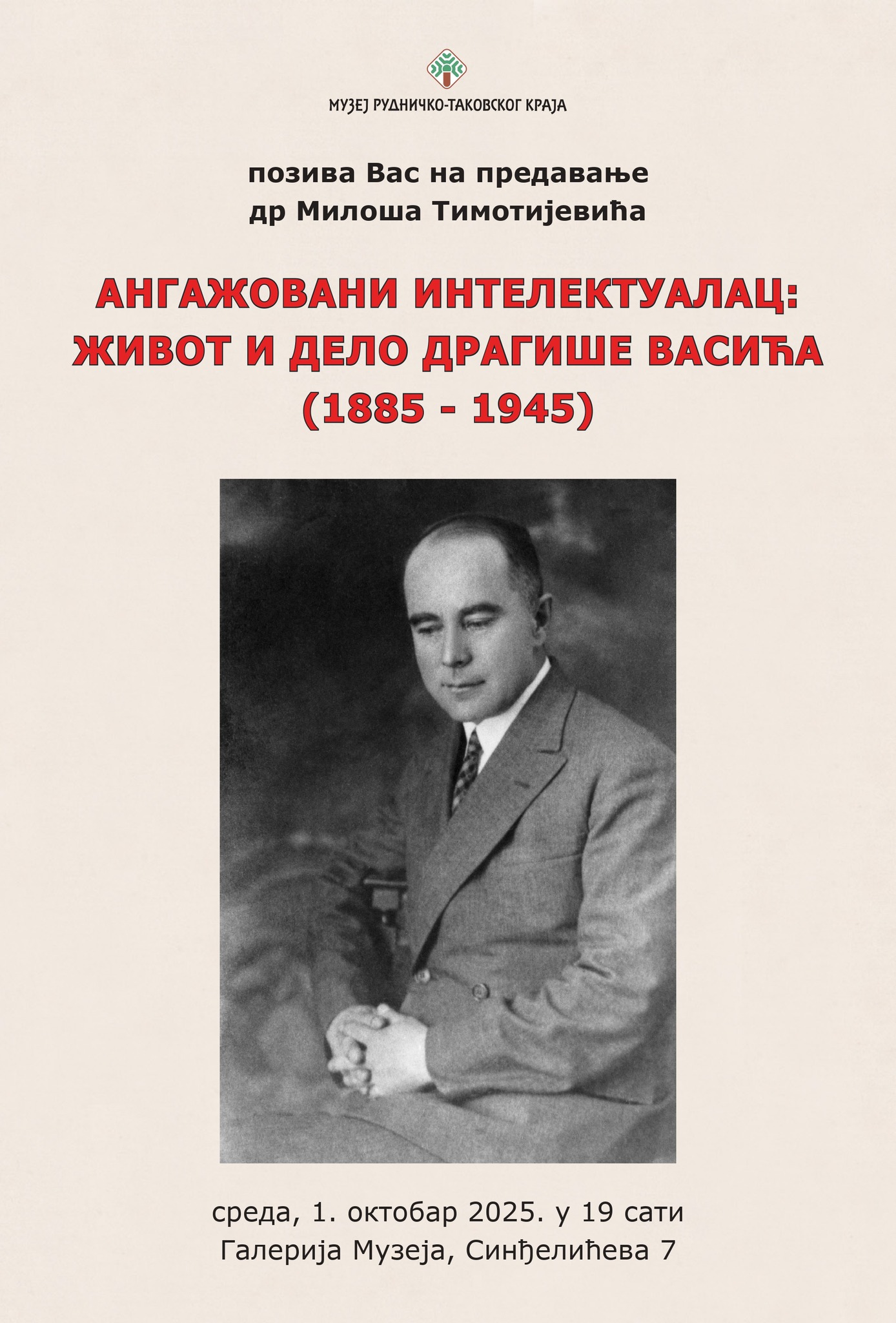Predavanje će biti posvećeno jednom od najznačajnijih i najkontroverznijih srpskih intelektualaca prve polovine XX veka.
