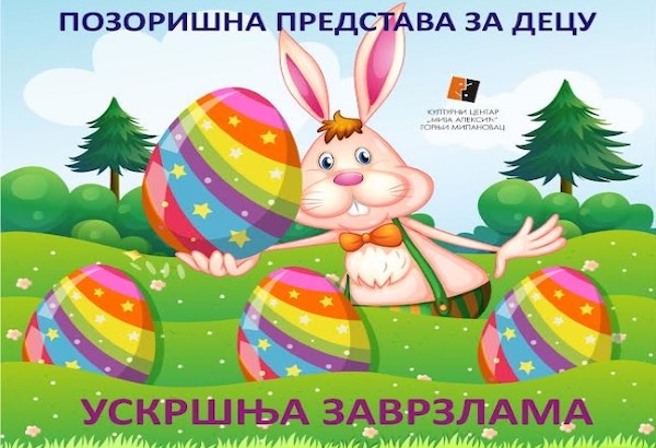 „Teatar Dodir“ iz Beograda u ponedeljak, 6. aprila 2026. godine od 18 sati na velikoj sceni Kulturnog centra izvešće predstavu za decu: „Uskršnja zavrzlama“.