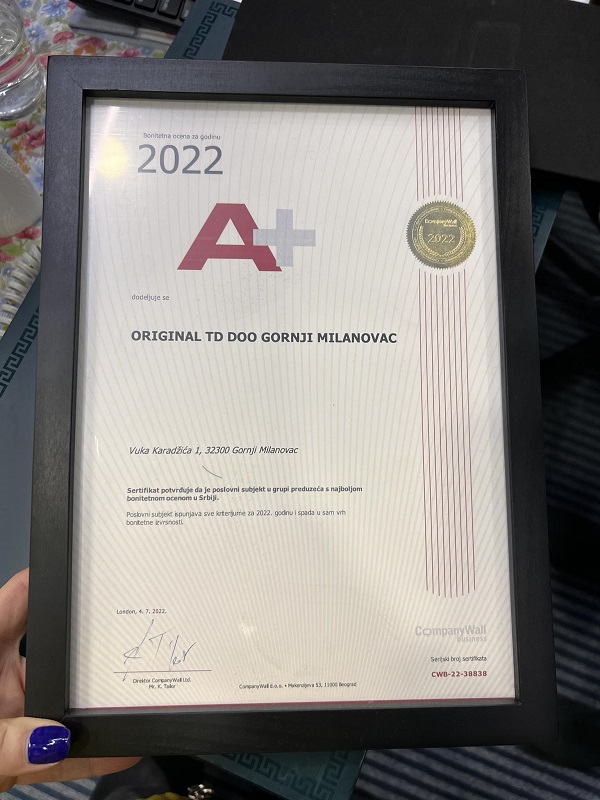 Jedna od nagrađenih ove godine je i Milanovčanka Natalija Vujović, vlasnica trgovinskog preduzeća Original u G. Milanovcu.