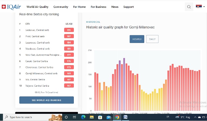 Prema podacima sa sajta IQAir, vazduh je danas zagađen u velikom broju gradova Srbije, ali veliki procenat zagađenja je i u Gornjem Milanovcu.