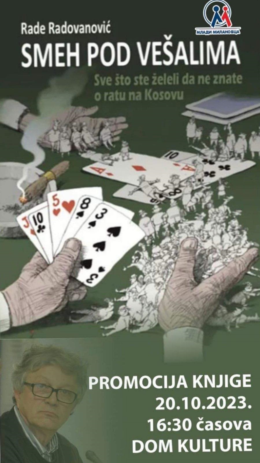 Promocija knjige „Smeh pod vešalima“, novinara i dramskog pisca Radeta Radovanovića, biće održana u petak, 20. oktobra, u 16:30h, u holu Doma kulture Mija Aleksić, u organizaciji udruženja Mladi Milanovca.