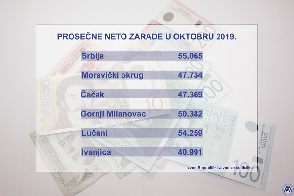Prosečna oktobarska zarada bez poreza i doprinosa u Moravičkom okrugu iznosila je 47.734 dinara.