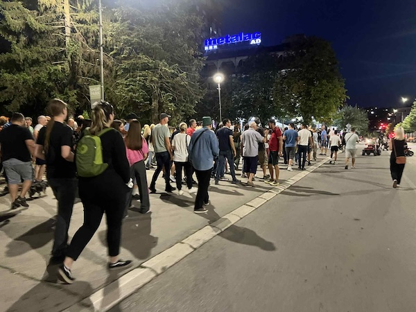 – Ovo je poslednji protest na kojem će naši nepomenici biti u ovim prostorijama, jer se oni sele odavde. Znam da vam je već dosadila ista ruta glavnom ulicom, pa ćemo ubuduće menjati pravac kretanja. Danas nisu imali hrabrosti da dođu ovde – bili su u kafiću pored kog smo prošli, ali su ubrzo otišli kada su čuli da kolona nailazi. To pokazuje da nas se plaše, iako ne znamo zašto. Naš predsednik opštine nijednom nije smeo da izađe pred narod – sme da se pojavi samo pred dvoje, troje ljudi. Zato bih želeo da ga pozdravimo i krenemo dalje.