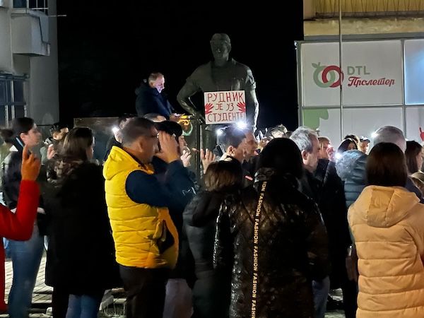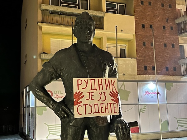 Građani su nosili transparente: “Rudnik je uz studente“, “Sutra zavisi od danas, zato smo ovde“, “Hoču da učim, neču da se bijem. Ćaci“, “Budućnost se ne moli, ona se osvaja“…