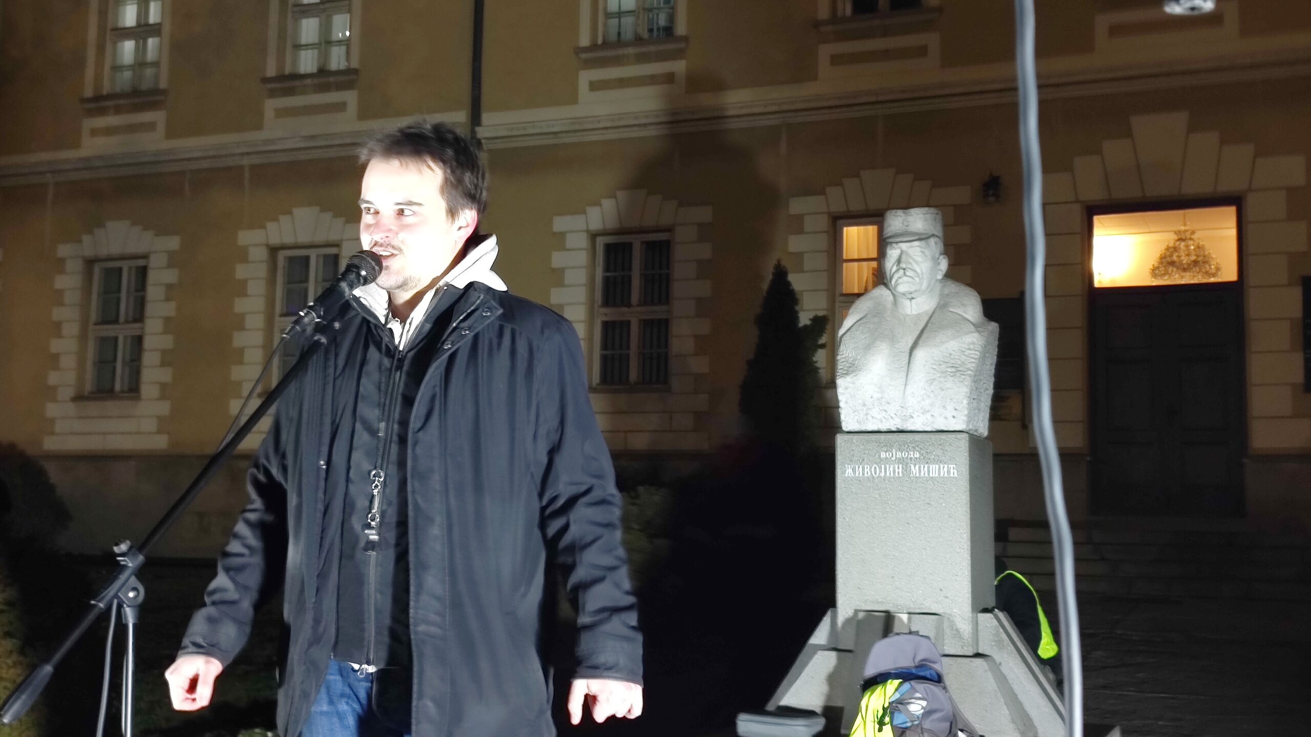 Sa improvizovane govornice ispod spomenika Živojinu Mišiću sugrađanima se obratio Bojan Savković iz UZINAT-a, predloživši da se večerašnji skup tretira i kao plenum građana koji će se izjasniti o tri predloga:
