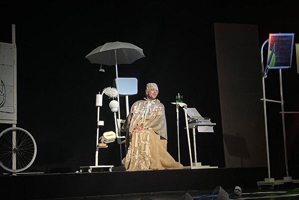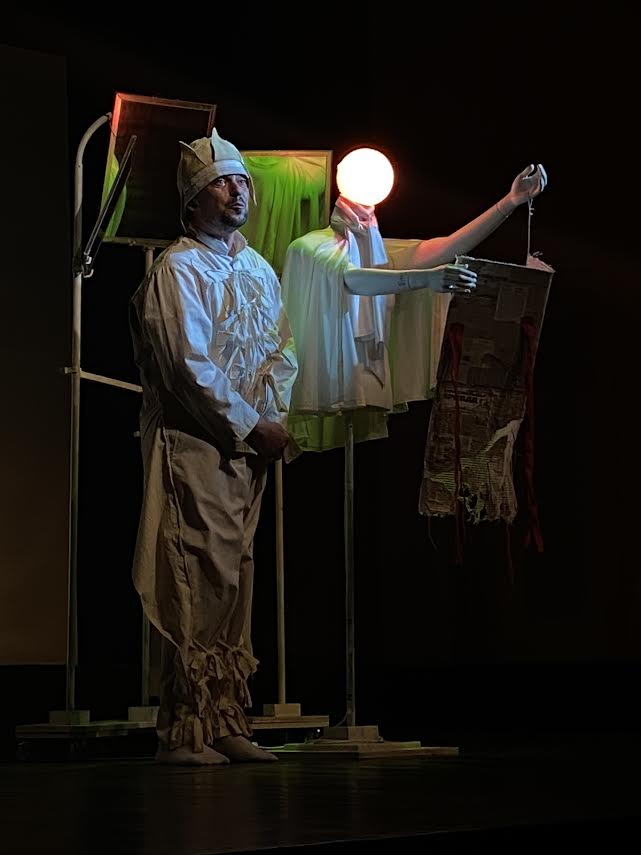 U najtežoj pozorišnoj formi, monodramskoj, pred sobom imamo scenu koja pruža mogućnosti glumačkoj dovitljivosti da iskaže svoju moć i talenat. Zaista, glumac je vladao scenografijom, a ne ona njime. Nije se po njoj šetao, već joj je dozvoljavao da bude tu, oko njega. Koliko je ona zaista funkcionalna i slikovita videli smo više puta, posebno u dijalogu s “nemim“ sagovornikom koji je umesto reči ponekad umeo da zasvetli. Scena kada se on, gotovo i ne znajući gde ne nalazi, javlja iza rešetaka duševne bolnice, zasijala je u trenutku ticijanskovskom svetlošću.