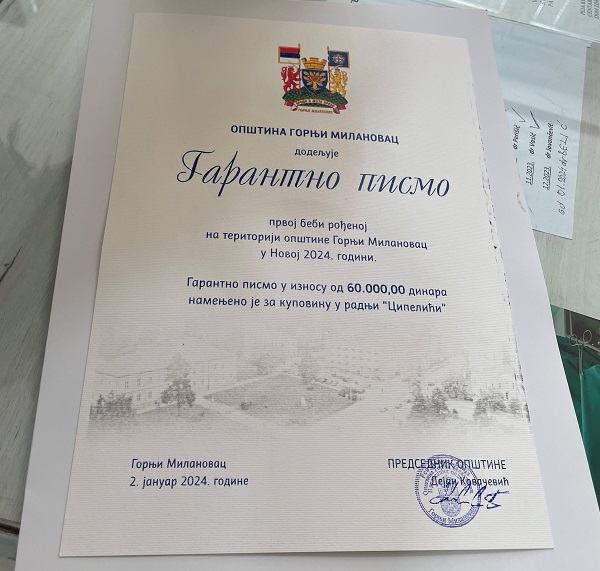 Prvoj bebi u 2024. poklon vaučer u vrednosti od 60.000 dinara