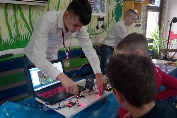 Deca uz pomoć iskusnih profesora predavača, a od raspoloživog materijala, edukativnih robotičkih konstruktorskih kompleta, interfejsa i nastavnih učila učila su prve korake elektronike i robotike, da prave robota koji može da se kreće u prostoru, svetli, priča…