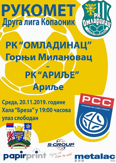 Rukometna utakmica 4. Kola Druge lige Kopaonik za muškarce odigraće se u sredu, u 20. novembra, u 19 časova u sportskoj hali Breza u Gornjem Milanovcu.
