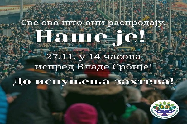 Podsetili su i na proteste u više drugih mesta u Srbiji, organizovane zbog ekoloških problema, te pozvali na okupljanje ispred Vlade Srbije 27. novembra u 14 časova.