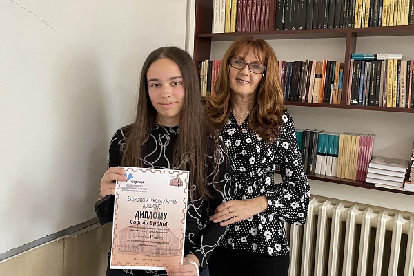 Učenica prvog razreda, Ekonomsko-trgovačke škole „Knjaz Miloš“, Sofija Broćić, zauzela je drugo mesto na Republičkom takmičenju iz matematike za učenike ekonomskih škola, koje je održano u Čačku.