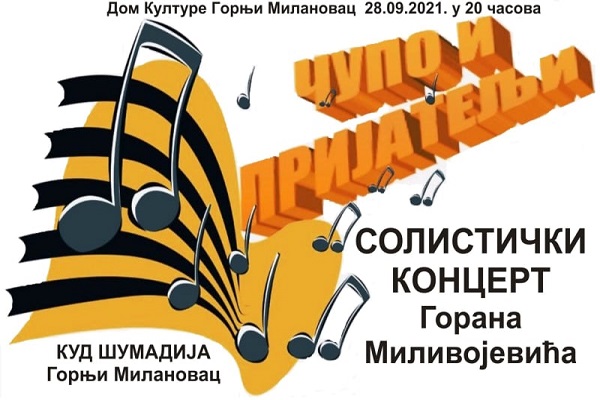 Solistički koncert Gorana Milivojevića biće organizovan u utorak, 28. septembra u velikoj sali Kulturnog centra Gornji Milanovac.