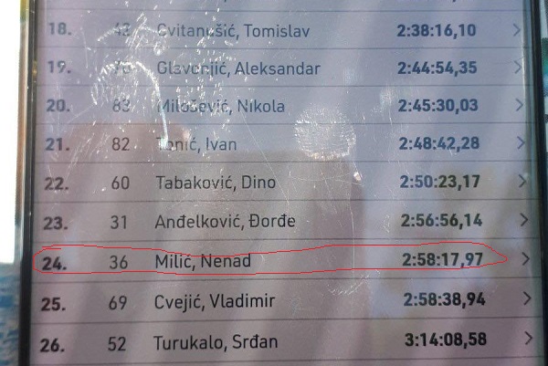 Milanovčanin Nenad Milić zauzeo 24 mesto, a njegovo vreme je 2:58:17.