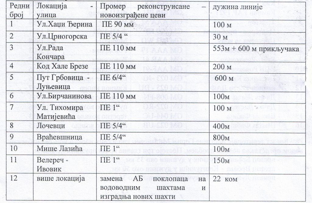 Samo u prošloj godini, prema izveštaju JKP, izvršena je rekonstrukcija i izgradnja blizu 4000 metara vodovodne linije u nadležnosti ovog preduzeća. Detaljno u tabeli ispod: