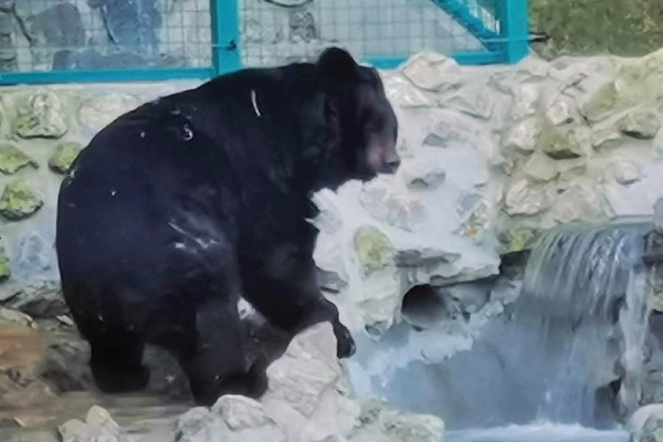 Medved Uroš iz Beogradskog zoo vrta jutros je izašao napolje i uživao u suncu.