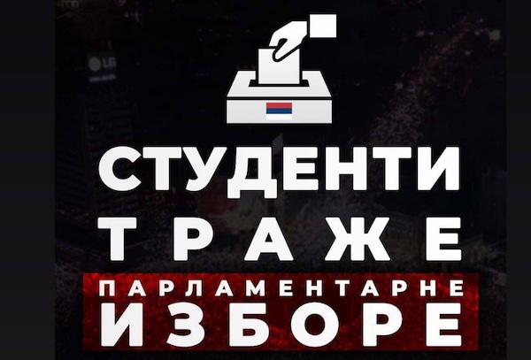 Studenti u blokadi u Beogradu objavili su sinoć da traže vanredne parlamentarne izbore: „Tražimo momentalno raspuštanje Narodne skupštine i raspisivanje vanrednih parlamentarnih izbora u skladu sa članom 109 Ustava Republike Srbije.“