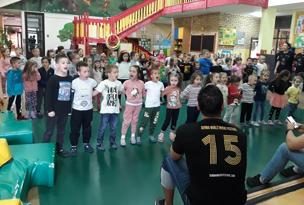 Srpski festival svetske muzike i kompanija „Svislajon – Takovo“ obradovali su danas mališane iz Predškolske ustanove „Sunce“.