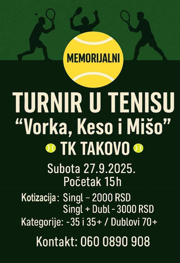 Narednog vikenda TK „Takovo“ završava sezonu na otvorenim terenima prvim memorijalnim turnirom posvećenim Ljubomiru Vorkapiću, Radoslavu Draškoviću i Milošu Lazoviću – sportistima i dugogodišnjim članovima kluba koji su ostavili značajan trag u njegovom razvoju.