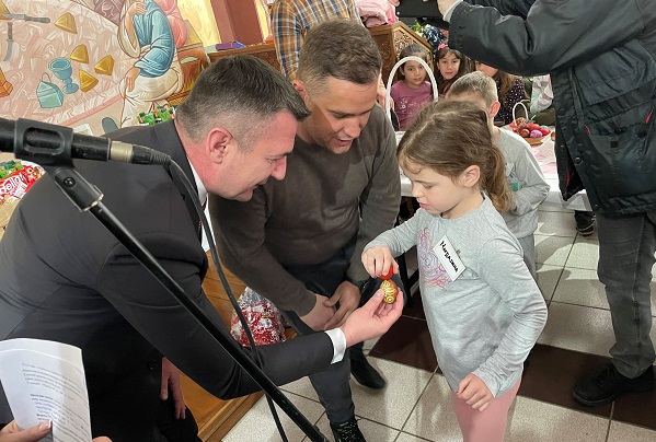 – Drago mi je što se ovaj naš lep novoustanovljeni događaj i ove godine održava i što je veliki broj dece iz PU “Sunce” u njemu učestvovao i što sam ponovo izgubio u kucanju jajima. Potrebno je da našu decu učimo od malih nogu tradiciji, običajima, veri, kroz nešto što ona najviše vole, a oni najviše vole Vaskrs, zbog kucanja jajima. Bilo je vrlo lepo, sa ovom tradicijom ćemo nastaviti i ubuduće, da naučimo decu, da bez poštovanja istorije, vere i starijih neće ni oni imati budućnost. Uzdamo se u mlade naraštaje. Kako je bilo danas veselo u Parohijskom domu, nadamo se da će tako ostati i u budućnosti – rekao je Kovačević.