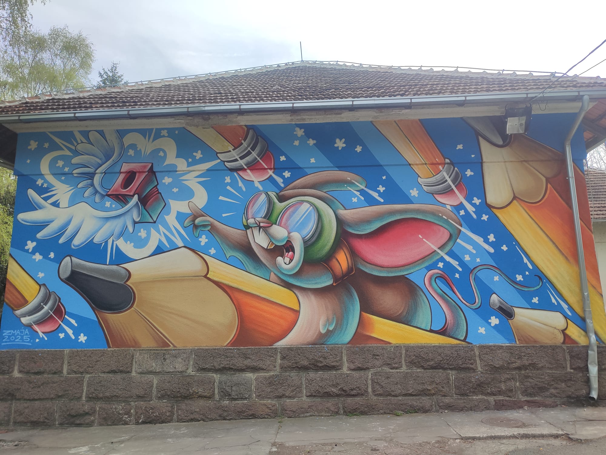 Prethodni mural koji je Klopkafest realizovao oslikan je na zidu Osnovne škole u Svračkovcima – rad umetnice poznate pod imenom Zmaja, i prikazuje prepoznatljivog miša.