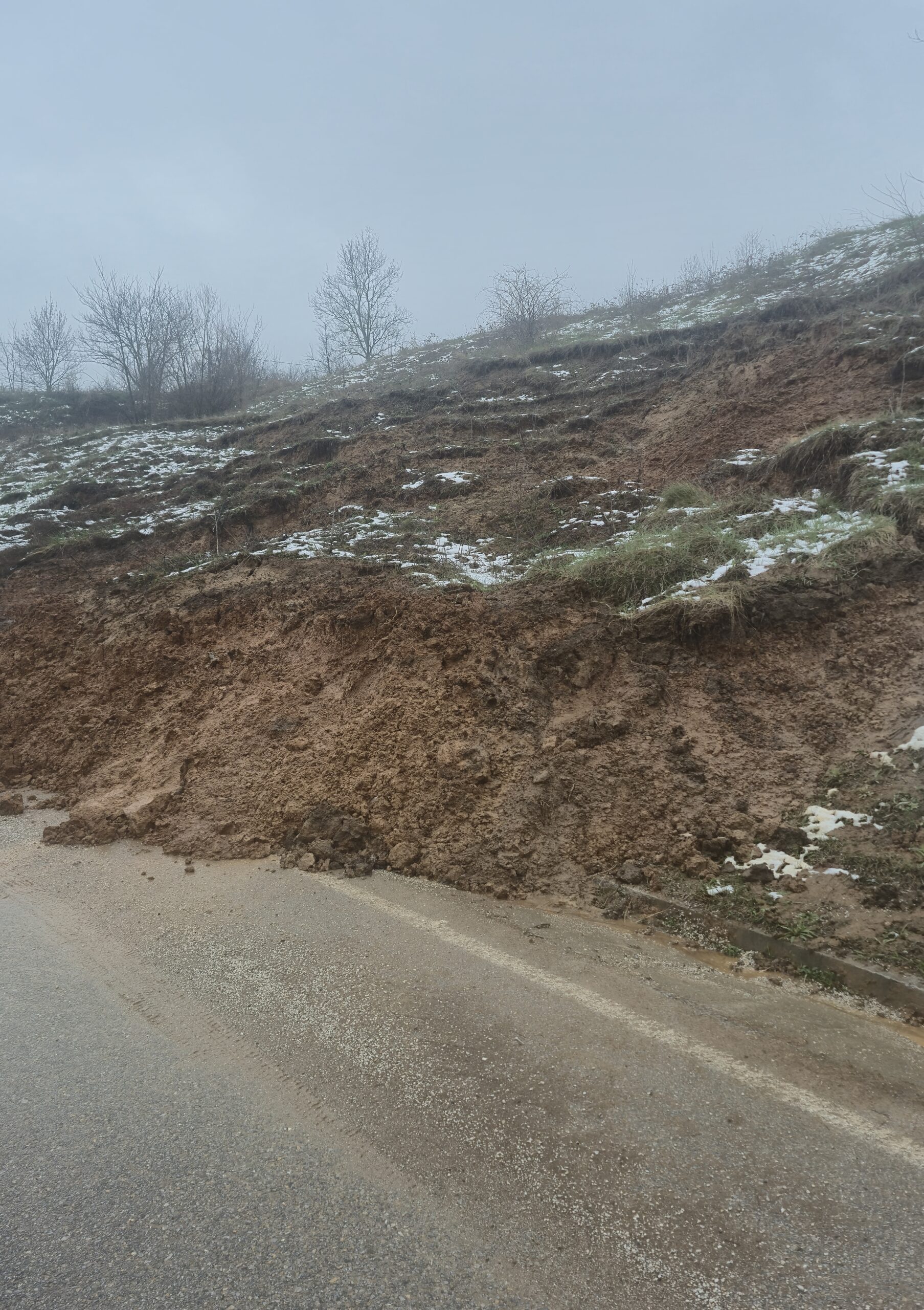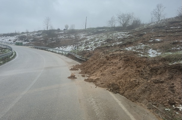 Kako se može videti na dostavljenim snimcima, deo zemlje sa okolnog terena obrušio se na kolovoz u krivini, što dodatno otežava bezbedno odvijanje saobraćaja.