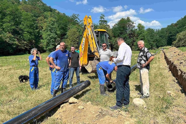 BERŠIĆI – Javno komunalno preduzeće Gornji Milanovac poslednjih sedmica intenzivno radi na zameni poroznih i dotrajalih vodovodnih cevi, zbog čega pojedini delovi opštine povremeno ostaju bez vode. Radovi su trenutno u toku u mesnoj zajednici Beršići, a gradilište su obišli predsednik opštine Dejan Kovačević i direktor JKP Ivan Lazić.