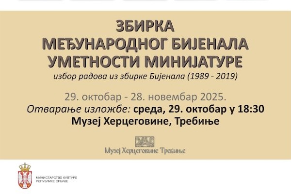 Kulturni centar „Mija Aleksić“, uz podršku Ministarstva kulture Republike Srbije predstaviće u sredu, 29. oktobra 2025. godine u Galeriji Muzeja Hercegovine u Trebinju reprezentativnu izložbu minijatura.